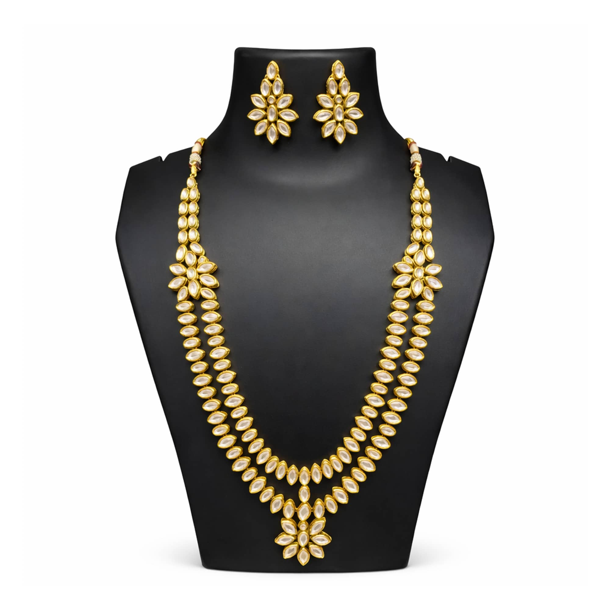 Gold Kundan Floral Long Necklace Set
