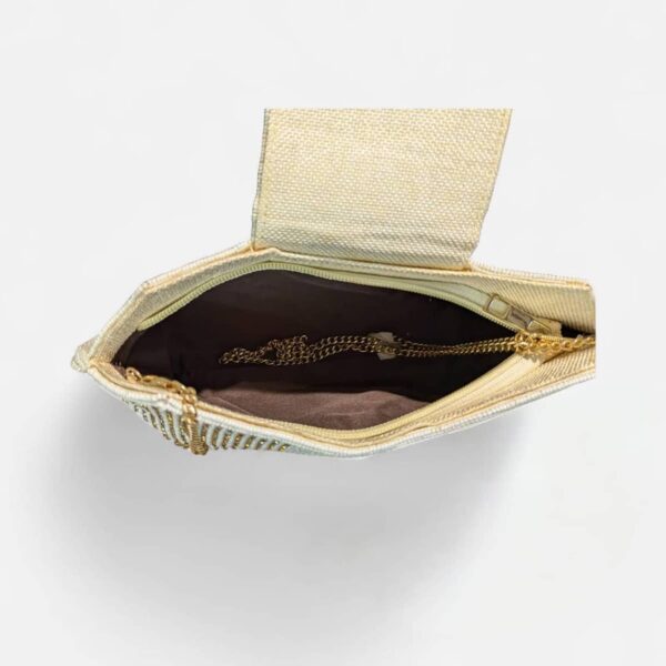Make every outfit shine with this beautifully handcrafted ivory and gold beaded clutch. Designed for women who love elegant accessories this statement piece blends traditional craftsmanship with modern style.