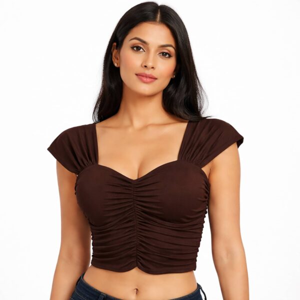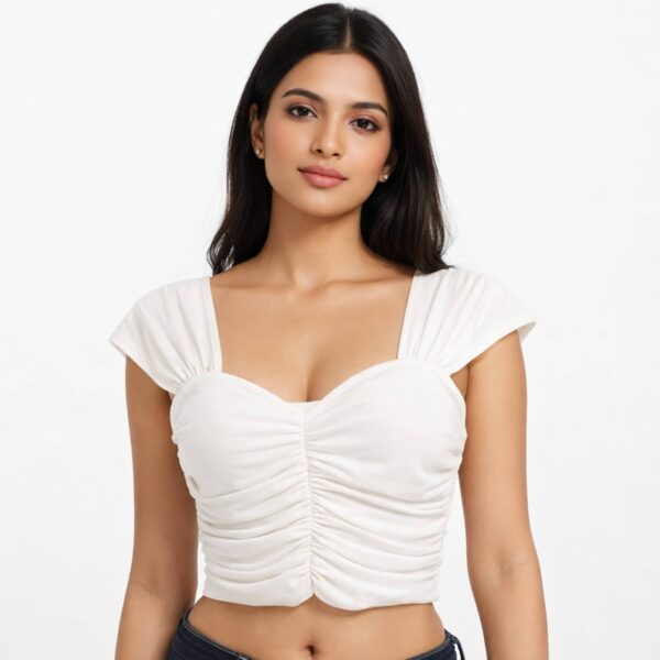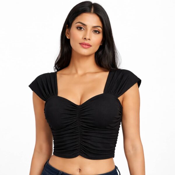 Be the first to review “Ruched Sweetheart Cap Sleeve Crop Top”