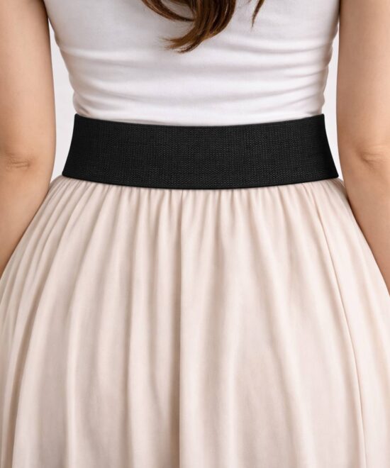 Black Elastic Waist Belt with Oval Gold Buckle for Women