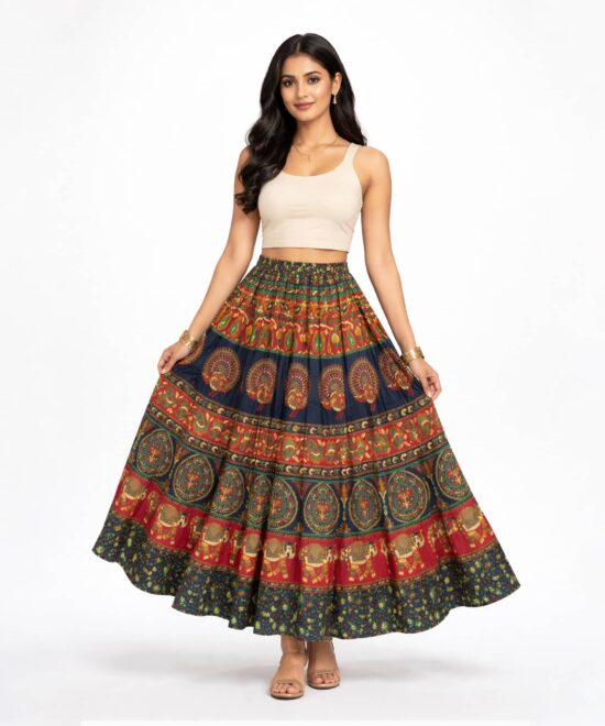 Heritage Print Boho Flare Skirt