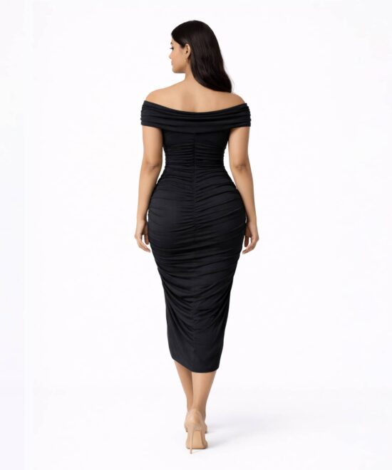 Midnight Muse Off Shoulder Ruched Midi Dress