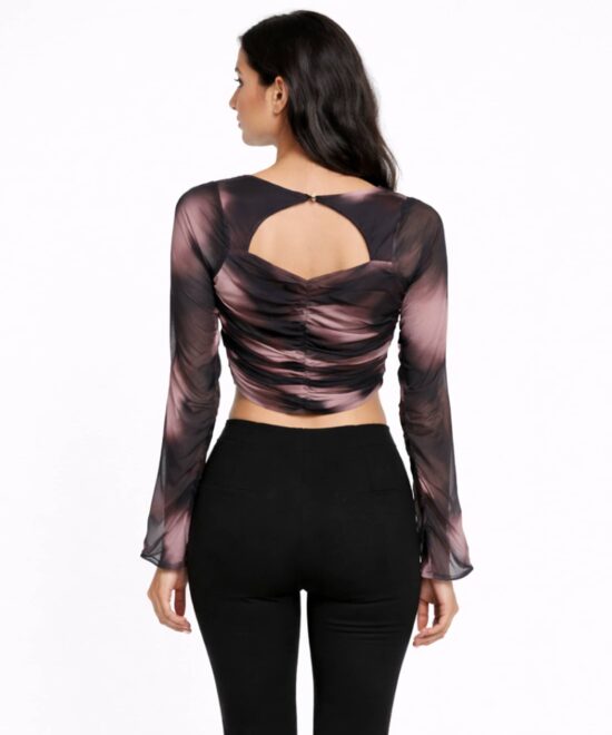 Ombre Mesh Sleeve Ruched Crop Top