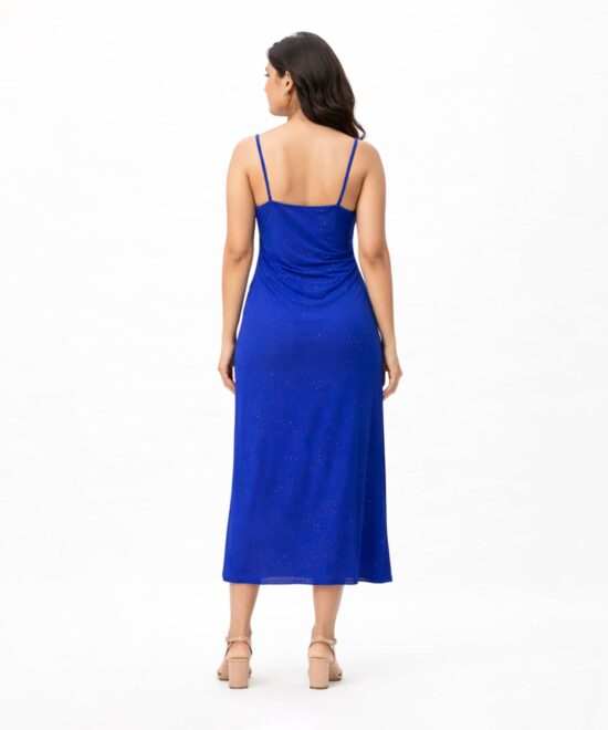 Shimmer Ruched Strap Midi Dress