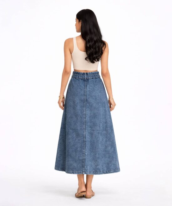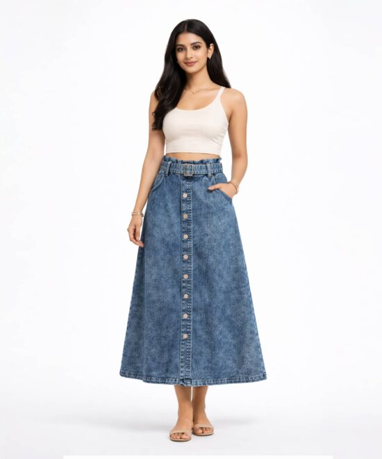 Vintage Wash Button Front Denim Skirt